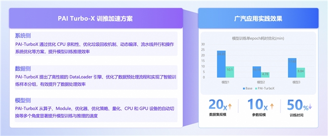 值得高兴的是,广汽在模型训练效率上,成功应用了PAI Turbo-X的模型训练加速方案,在系统侧,数据侧,模型侧等多维度全方位加速: